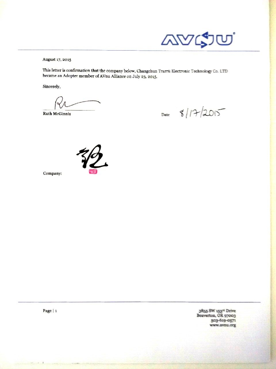 2015年7月加入AVnu联盟,成为该联盟在中国大陆的******会员单位。